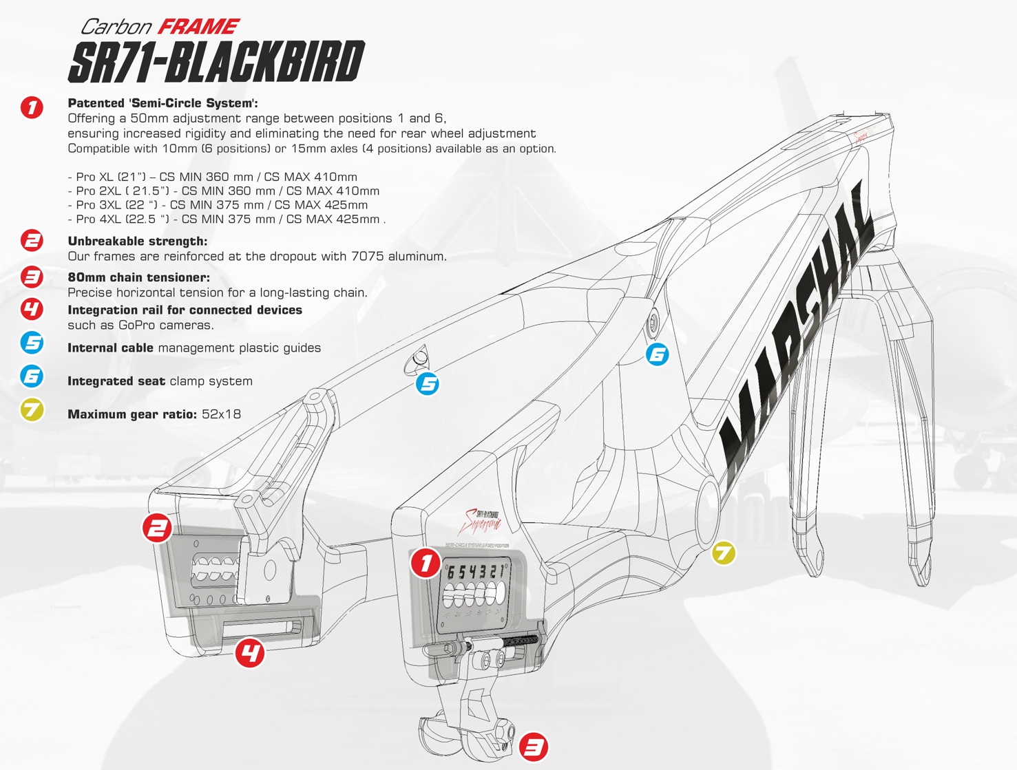 Designed with Japanese Toray T700 carbon fiber and reinforced with T1000 in critical areas, the SR71-BLACKBIRD frame delivers exceptional stiffness while maintaining a controlled weight.